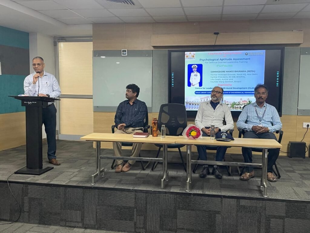 A 5-day Faculty Training workshop was conducted from 5th to 9th May 2025 in MVGR College, Vizianagaram, AP. Besides regular subjects, special emphasis was made in the workshop on leadership ethos in Indian Armed Forces.